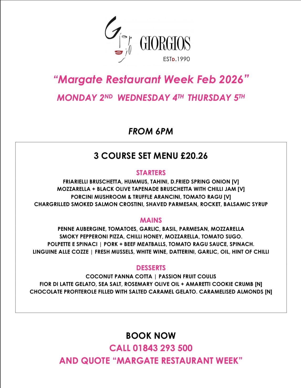 Please quote “Margate Restaurant Week” when booking.
